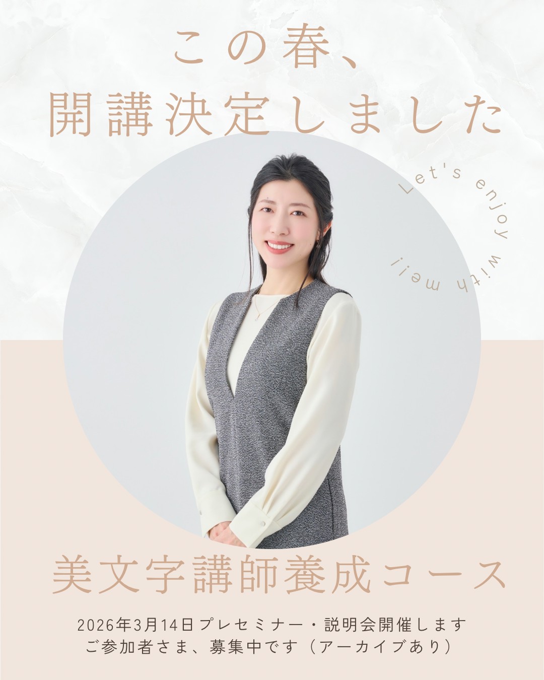 募集「萩原季実子の美文字講師養成コース説明会・1dayプレセミナー」のご案内(3/14開催・アーカイブ視聴OK)