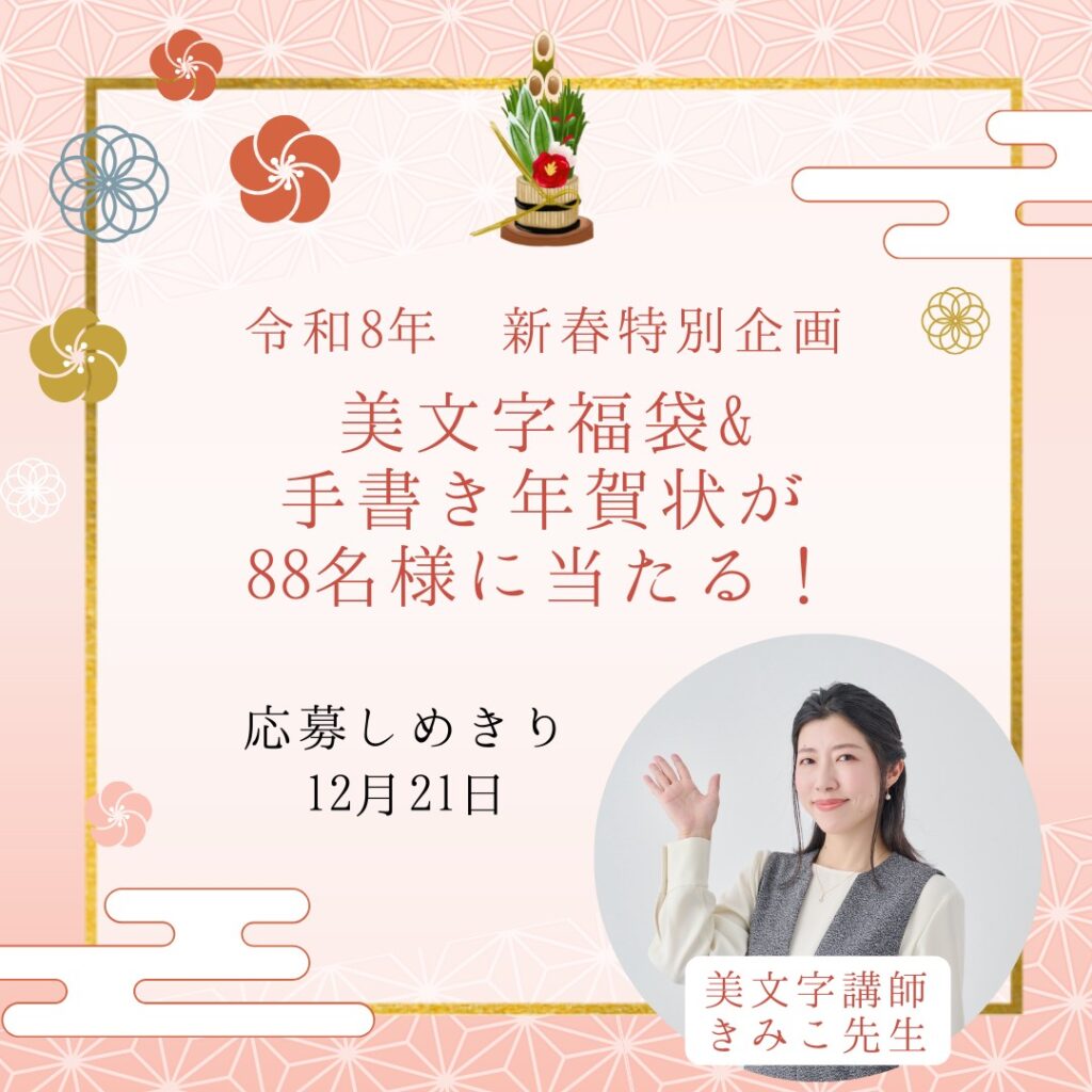 抽選で『2026年新春特別企画★萩原季実子のオリジナル手書き年賀状・美文字福袋』をプレゼントいたします。